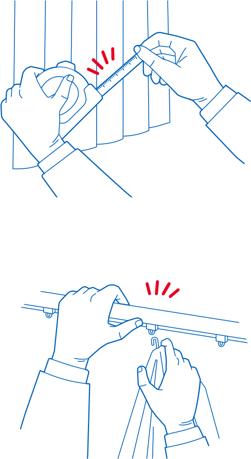 カーテンフックの高さを調整して上部空間のすき間を最適にします。